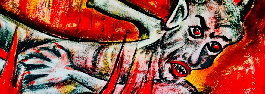 見れば、恐ろしげな鬼たちが裸の人間たちを追い立て、手に持った鋭い槍で、突き、殴り、串刺しにしていたのだった。人間たちは全身これ血まみれの姿で、苦悶の叫びを上げながら転げ回っていた。