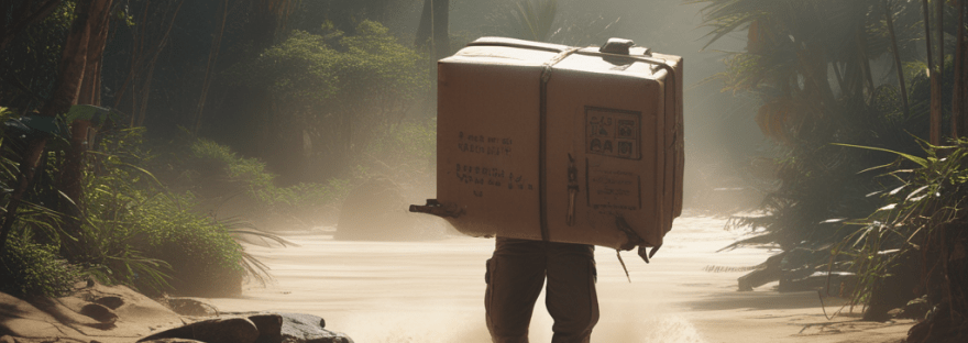 この死の砂漠を抜けると、広大な密林が行手を阻む。ほとんど裸で暮らす原住民がここからの配達を担うのだ。原住民は文明化されていないので、積荷の価値などわからず、扱いもすごく雑だ。しかもジャングルのすごい湿度でなんでもたちまちカビだらけになる。また、軍隊アリたちが群れで襲ってきて、なんでも噛み破って粉々にしてしまうのだ。