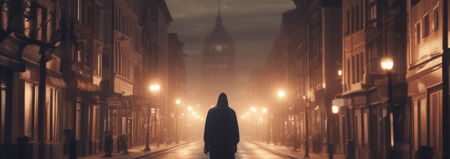 くすんだ街路は人気がない。そこに、ひとりの男が現れ、歩き去っていく。傘は差してはいない。そこで、傘を持たずに下に降りることになる。