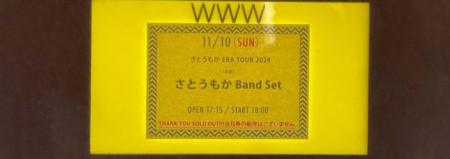 コロナのとき、さとうもかの『GLINTS』(2020)をたまたま聞いて気に入ったので、このアルバム、そしてその次に出た『Woolly』(2021)もよく聞いた。そして、この10月31日に新しいアルバム『ERA』が発売され、そのツアーがあるというので、今日11月10日、渋谷WWWのライブ「さとうもかBand Set」に行った。