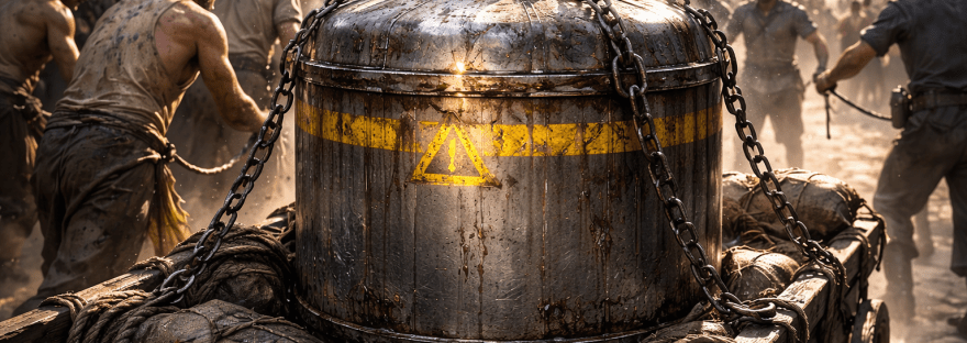 半裸の男女が巨大な荷車を動かしているのだった。ある者は引っ張り、またある者は後ろから押していた。荷車の上にはドラム缶のような大きな容器が積まれていた。