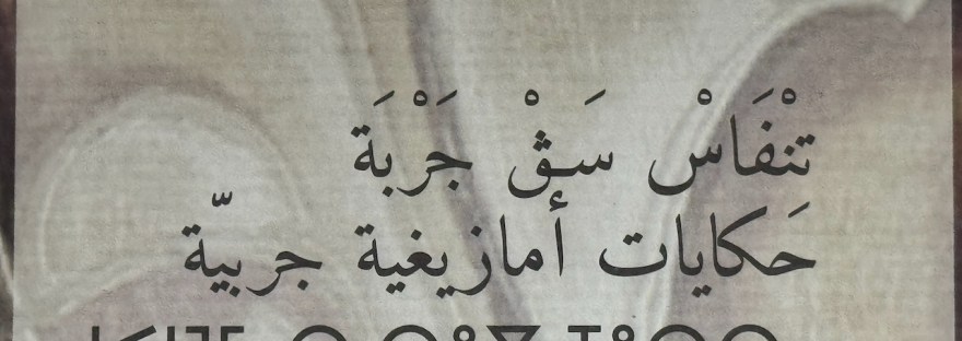 (写真:ジェルバのベルベル語の物語集の表紙から。上から順にアラビア文字表記ベルベル語、アラビア語、ティフィナグ文字表記ベルベル語)