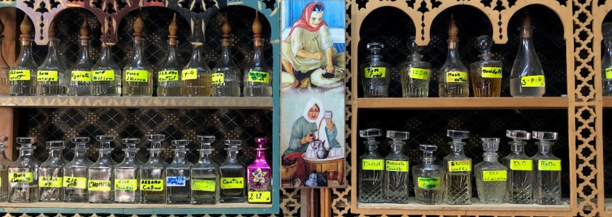 (写真:チュニスのメディーナの香水屋)