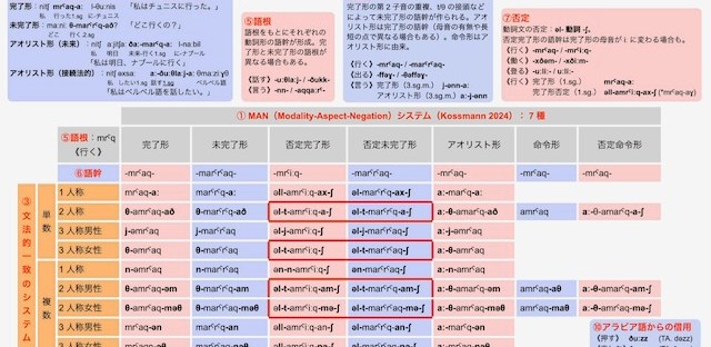 だが、私はもっと楽しくしたい。そこで、以前のポスターでは、左右対称であるにしても、左右で説明を並走させて、左右のどちらから読んでもいいようにデザインした。今回は、そのシンメトリカルな構造もなくした。動詞の活用が売りの発表なので、動詞活用表を真ん中にドーンと置いたのだ。そして、その周囲を説明が取り巻くようなデザインにしてみた。