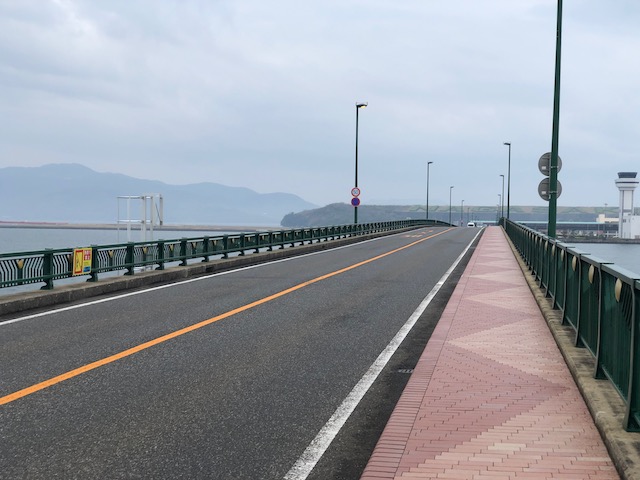 はじめは長崎駅に行こうと考えたが、バスがないので、歩いて長崎空港に行くことにした。1キロほどの箕島大橋を渡ればすぐだ。
